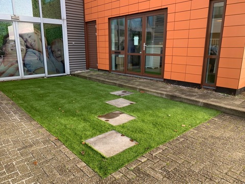 Kunstgras zien en voelen in de showtuin in Beverwijk